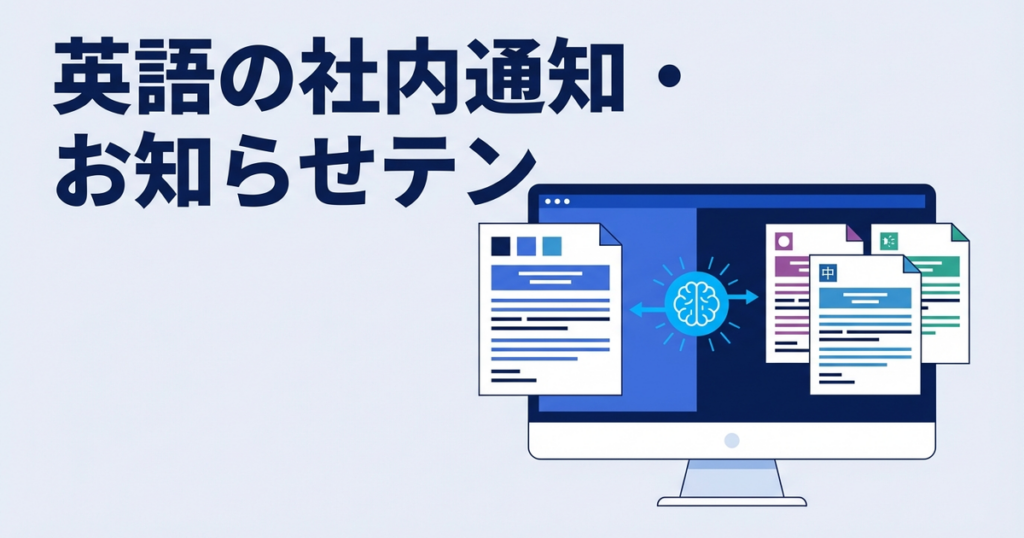 英語の社内通知・お知らせテンプレート10選|多言語版の作り方 外国人従業員が増える中、社内通知の多言語化が重要な課題です。 本記事では、社内通知のテンプレートを...